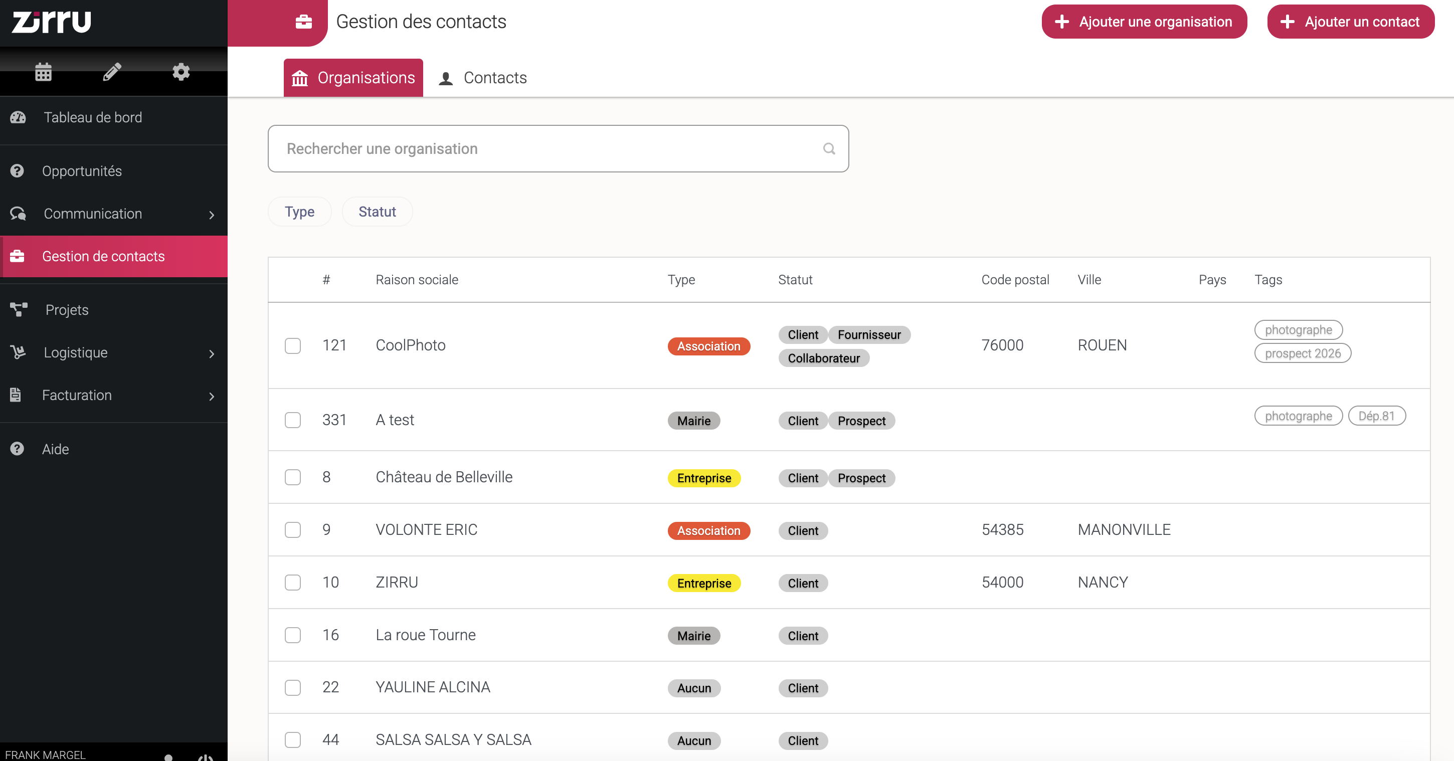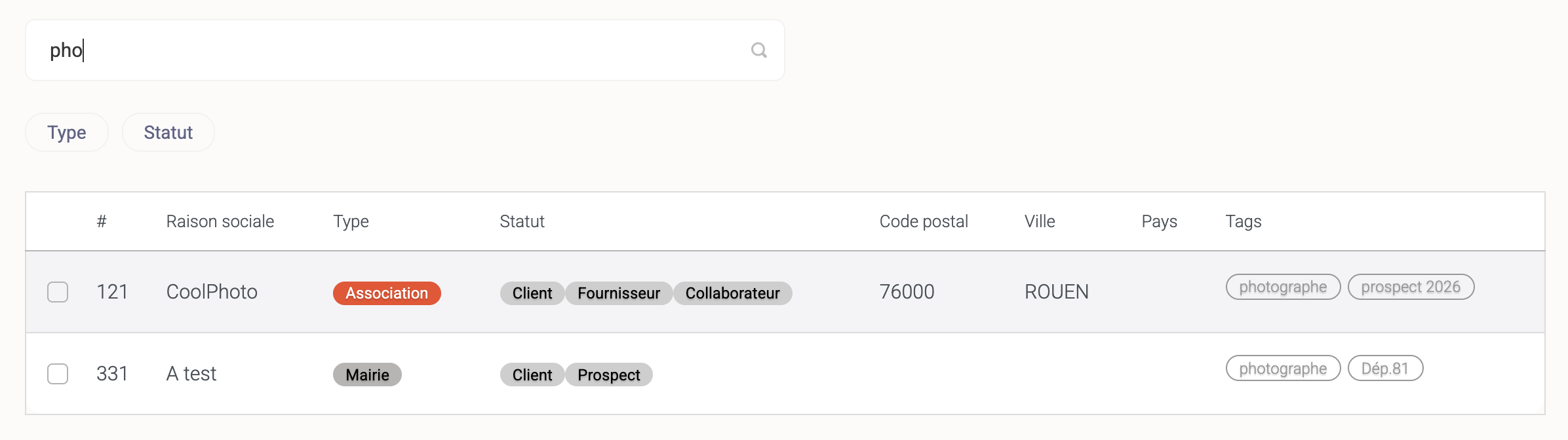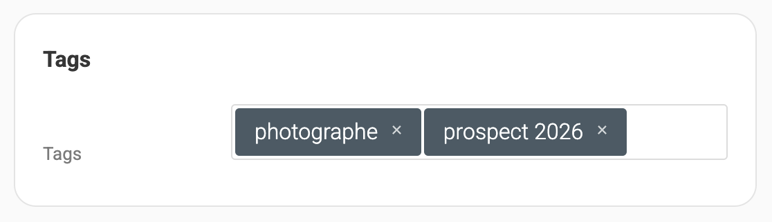 un TAG est une étiquette (mot-clé) que vous ajoutez sur une fiche organisation ou contact pour la classer et la retrouver facilement.